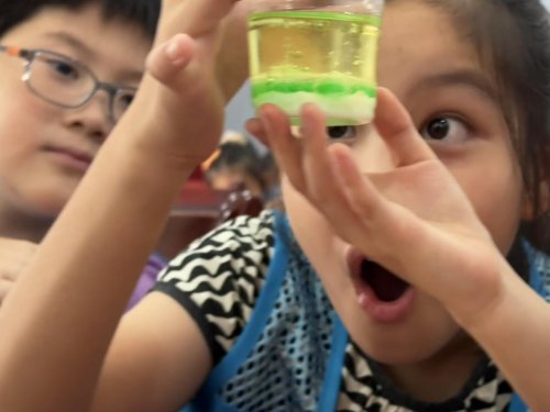 当孩子们惊叹于牛奶画布上的色彩风暴时,鲜有人知这场科学魔法背后的 “数日打磨”。自2025年6月起,杭师大科协48名成员开启 “实验攻坚战”:经历两轮严筛——从28个候选实验中精选15项,确保原理安全性与趣味性平衡;投入 8小时预实验——连续三次调试“水中花园”硅酸钠浓度,拍摄4版对比视频;历时 36小时集中磨课——全员完成线下试讲,通过教案迭代与风格碰撞将“跨专业团队”淬炼成“师范生”;后勤组辗转 6家供应商——分装70套实验包,精准匹配洗洁精、食用色素等23类耗材的128课时需求。